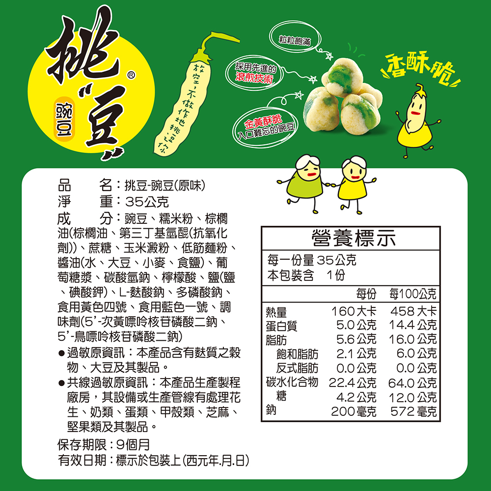 精選歐美大粒豌豆,搭上黃金特調鹹甜麵衣,每口都嚐得到濃郁豆香味。