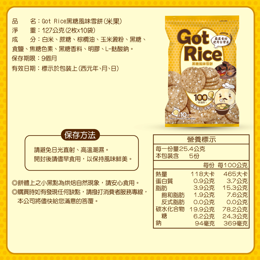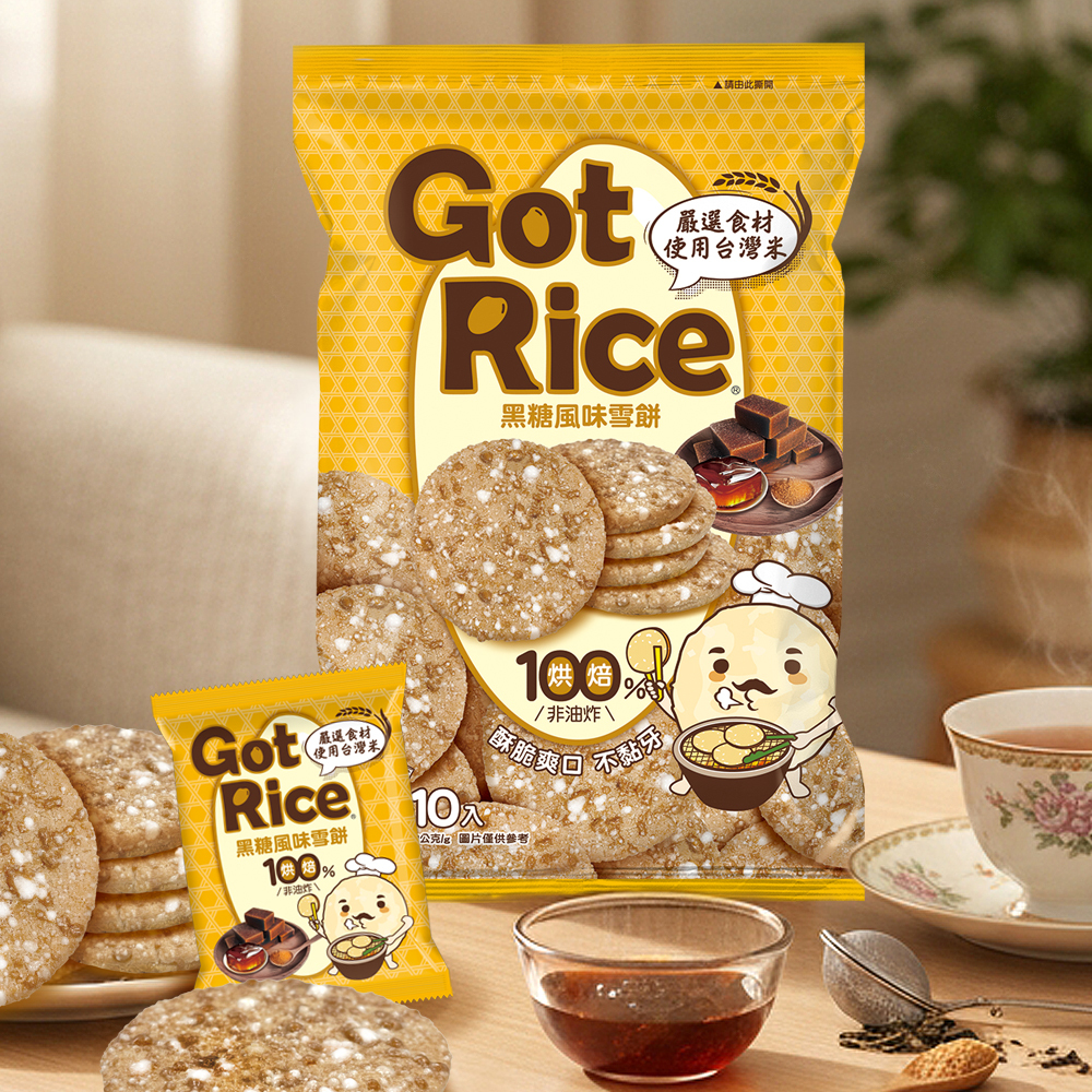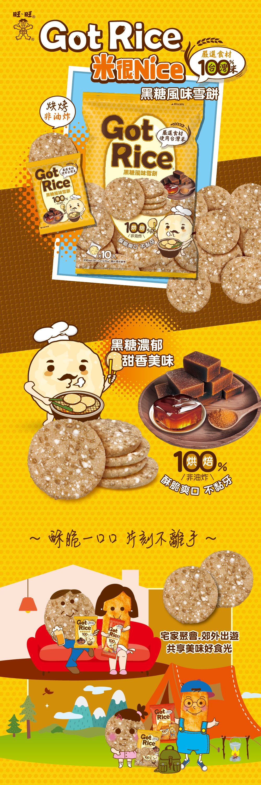 100%使用台灣米,讓甜蜜黑糖與香脆米果完美結合。