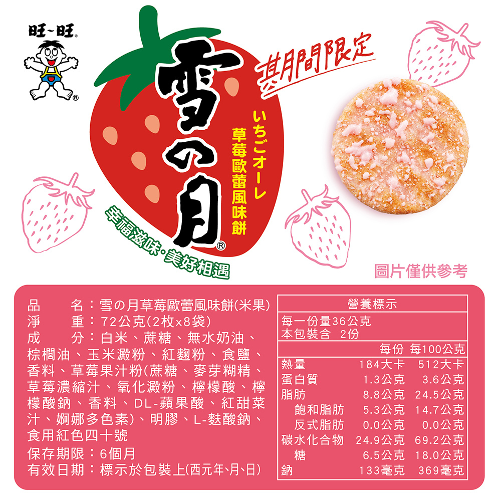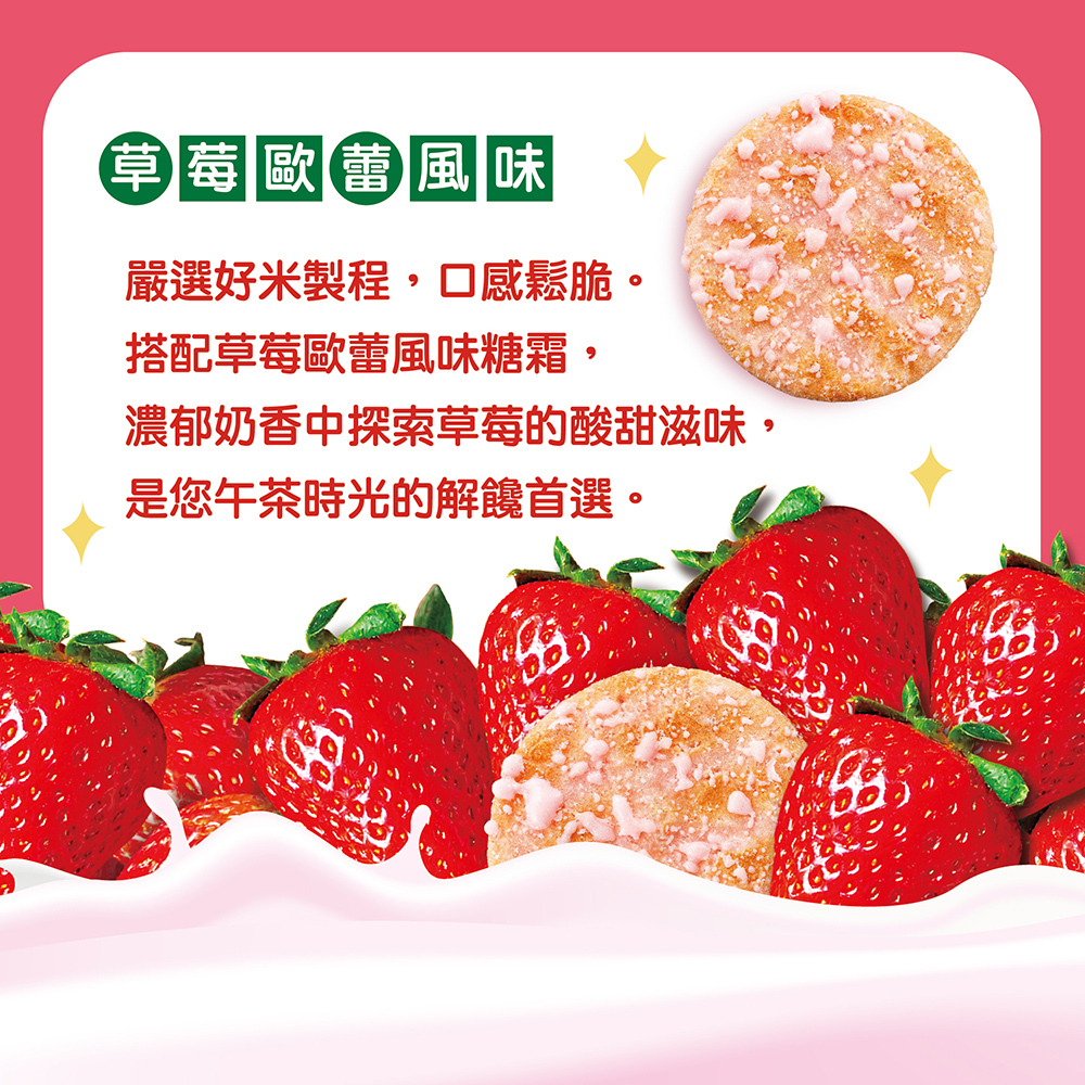 嚴選好米搭配草莓風味糖霜,濃郁奶香中探索到草莓的酸甜滋味,是午茶解饞的首選。