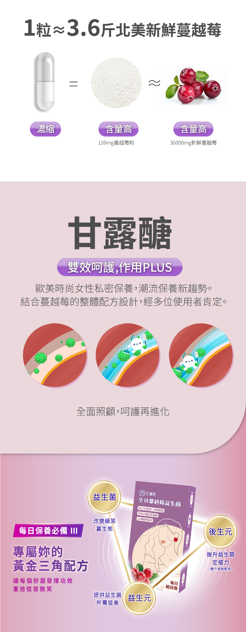 • 六大專利益生菌 × 高濃縮37倍蔓越莓(含前花青素PACs)