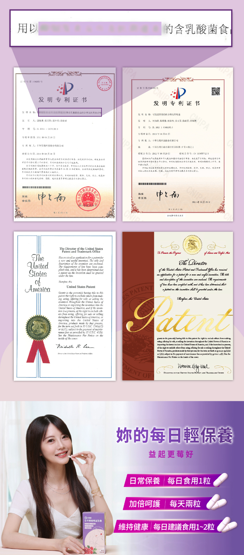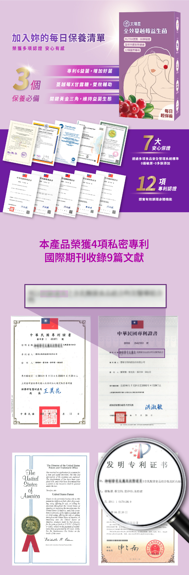 ◆獨家六益菌,獲4項國際專利