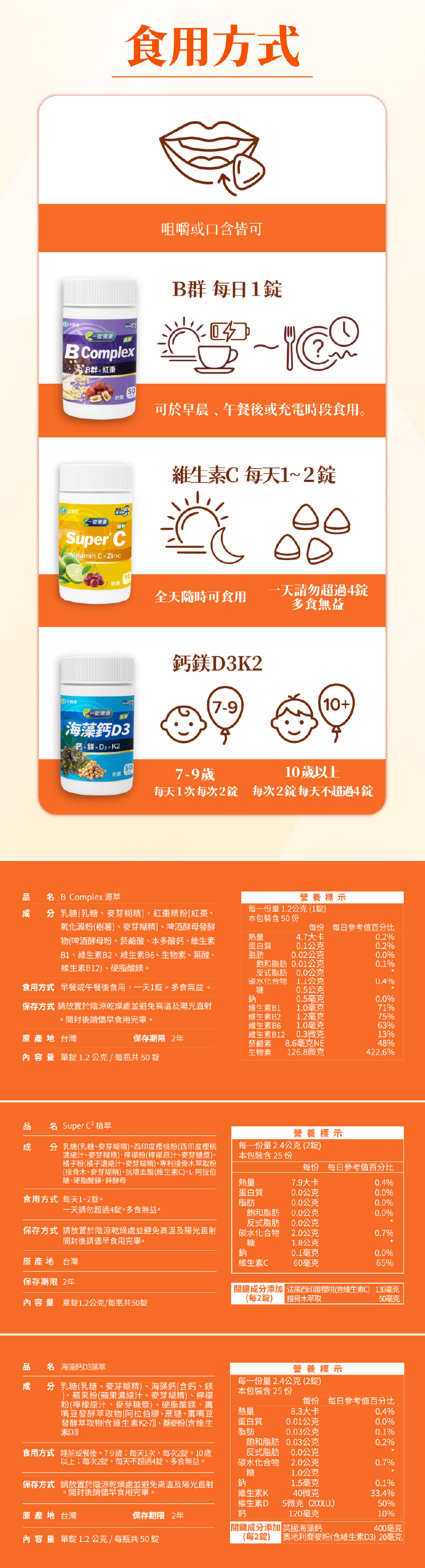 B Complex 源萃 × Super C3 植萃× 海藻鈣 D3