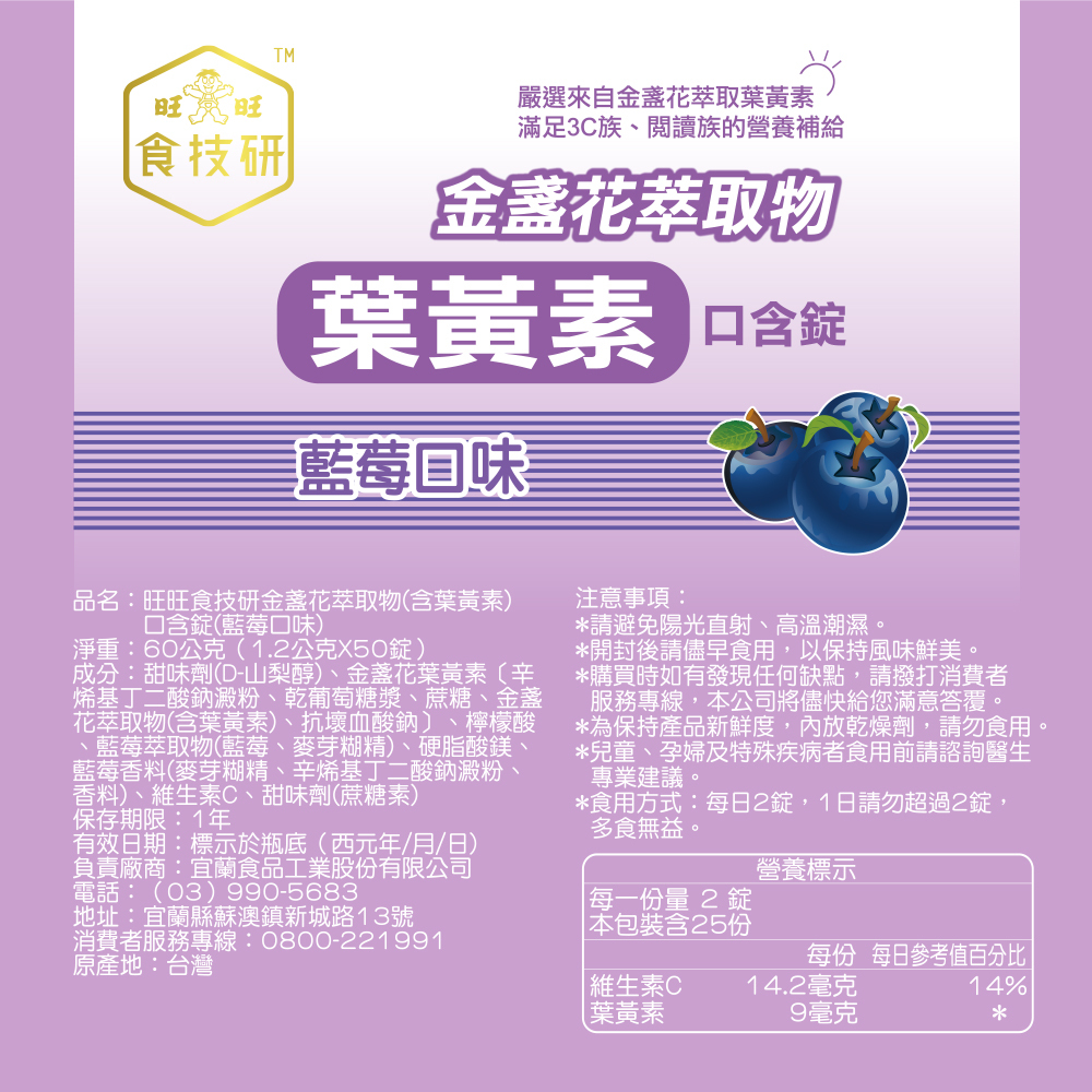 選用游離式金盞花萃取,含葉黃素(Lutein)。口含錠設計,免吞服:專為長時間使用3C產品者與銀髮族設計,不需配水,服用更方便。清爽風味口感佳